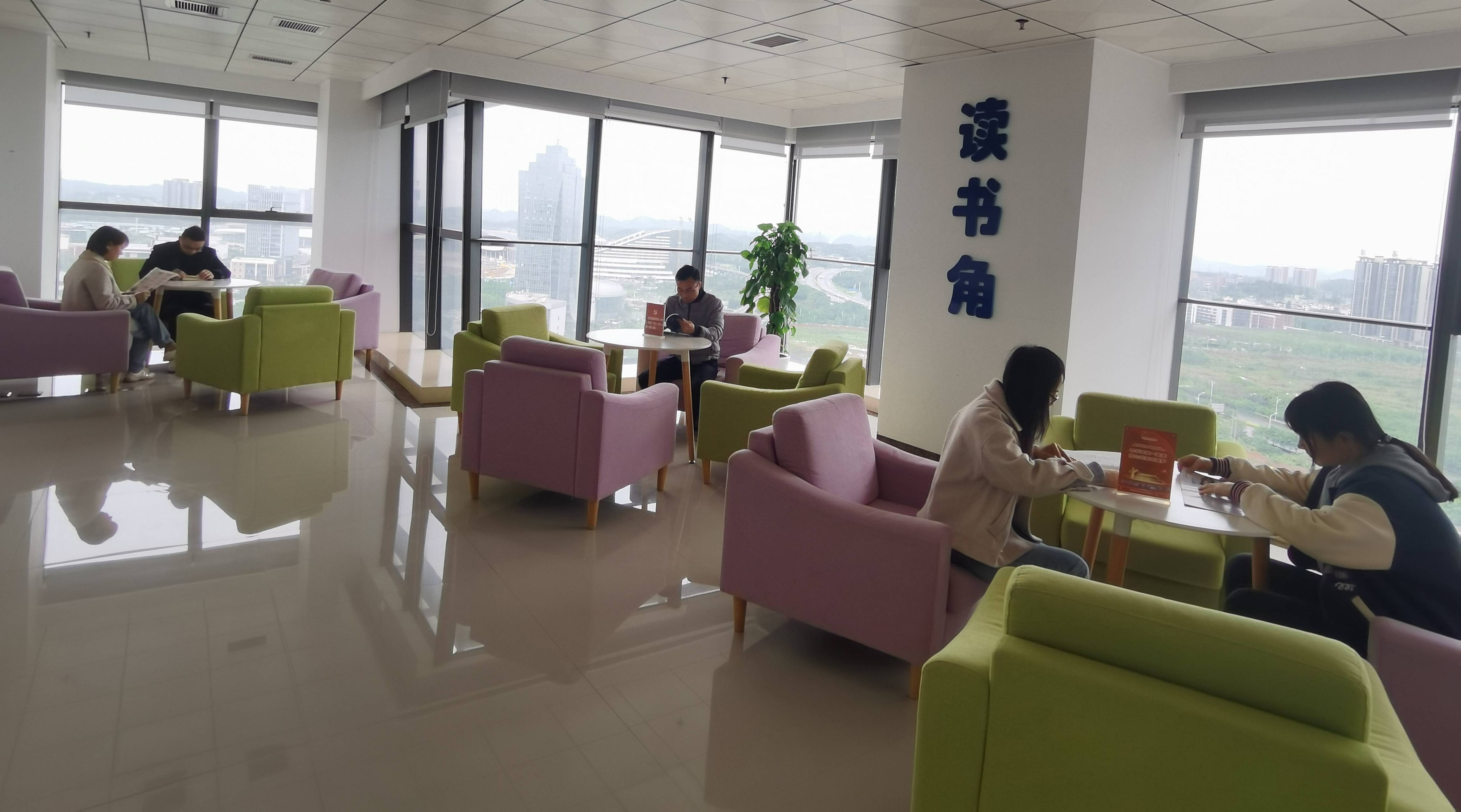 中心在16楼设立的读书角,摆放了文学、杂志、时政、党务等各类领域的书籍报刊供职工学习及借阅,为职工提供学习交流场所,丰富职工精神文化生活。书香机关建设让读书成为一种工作、生活习惯,让职工共享知识,共同进步。