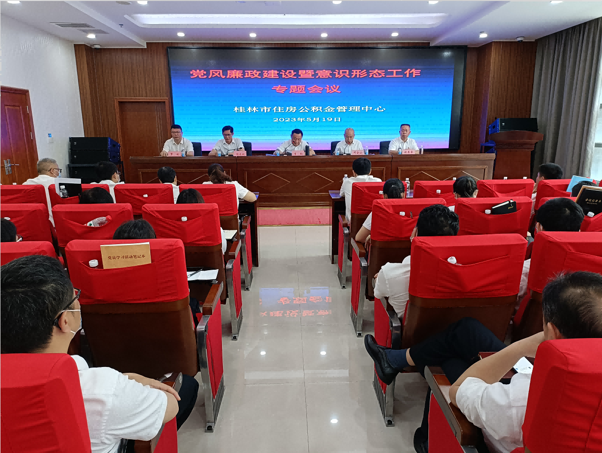 5月19日上午,桂林市住房公积金管理中心在金融大厦副楼二楼会议室召开2023年党风廉政建设暨意识形态工作专题会议,中心党组成员、市纪委监委驻市财政局纪检监察组组长谢长剑及中心其他在编干部参加了会议。