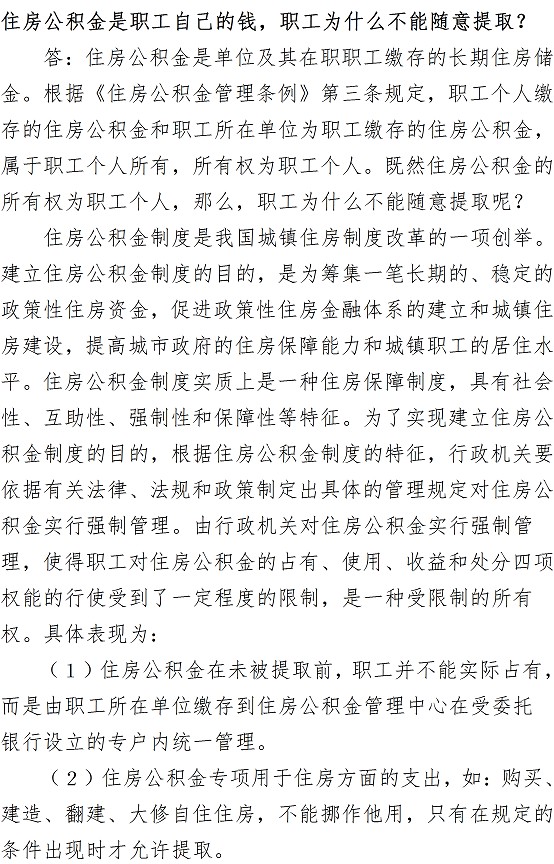 住房公积金是职工自己的钱,职工为什么不能随意提取?