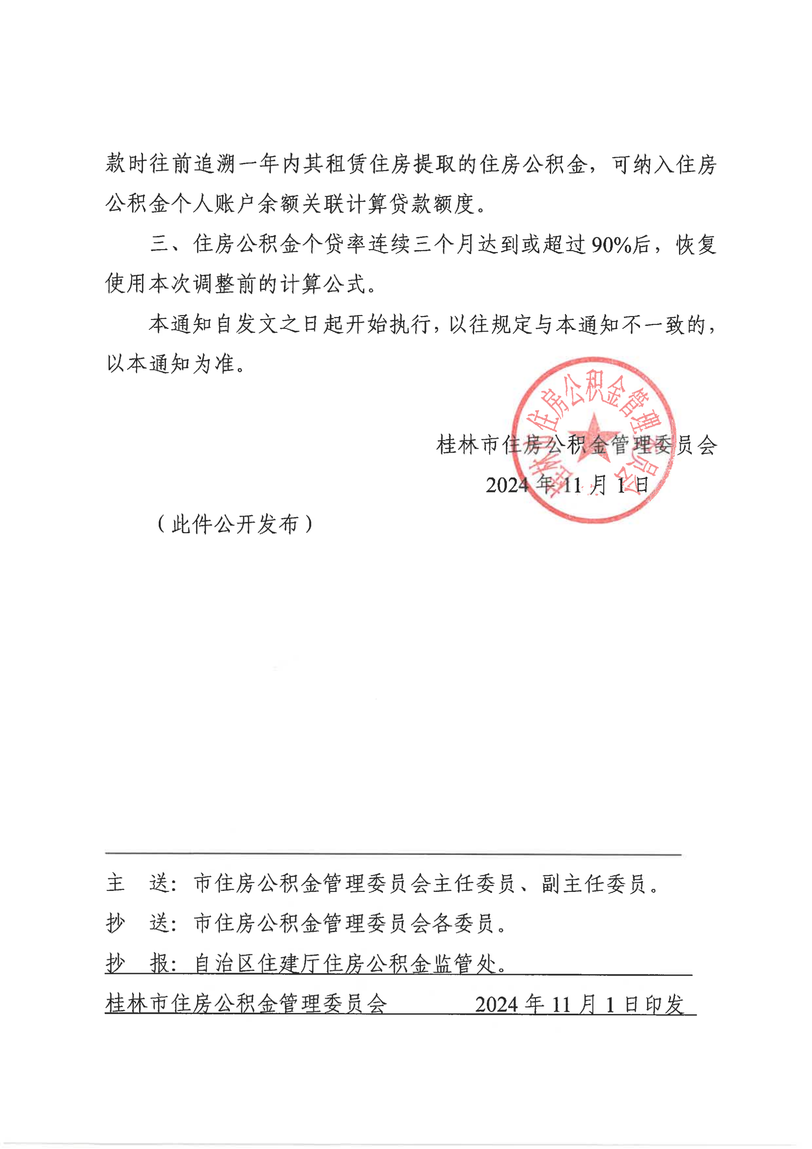 桂林市住房公积金管理委员会关于调整我市住房公积金贷款额度计算公式的通知(市公积金管〔2024〕1号)