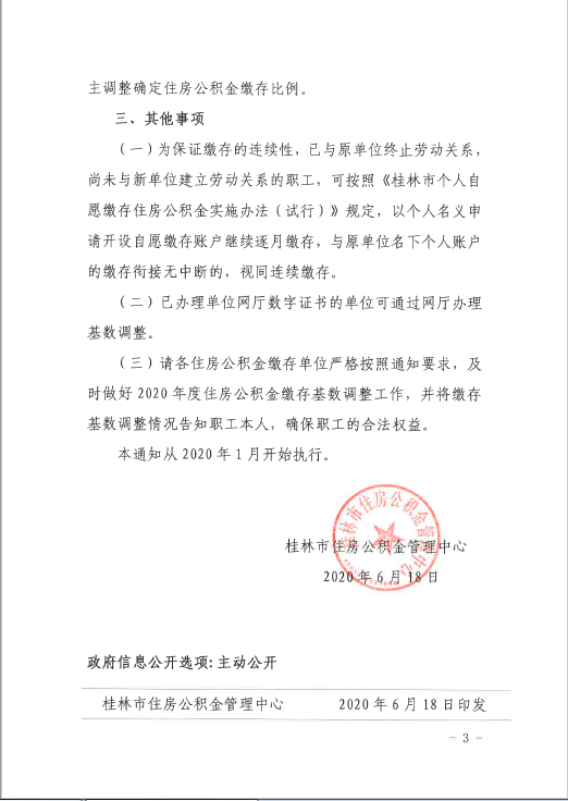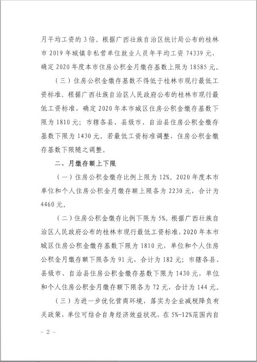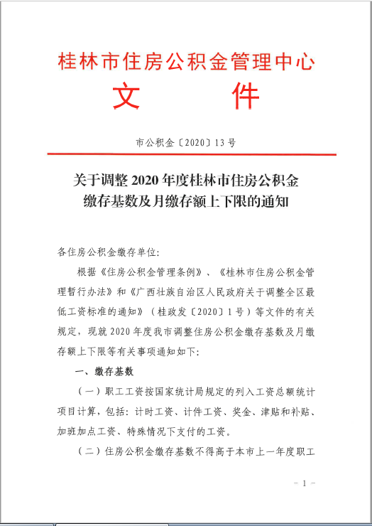 关于调整2020年度桂林市住房公积金缴存基数及月缴存额上下限的通知(市公积金〔2020〕13号)