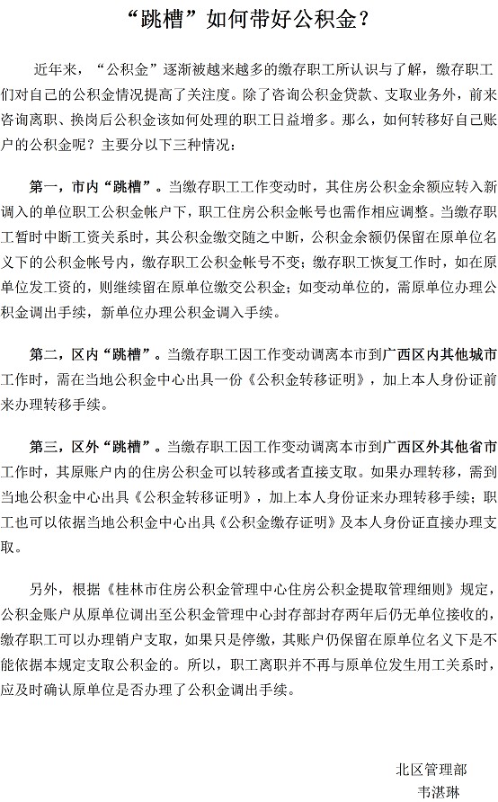“跳槽”如何带好公积金?