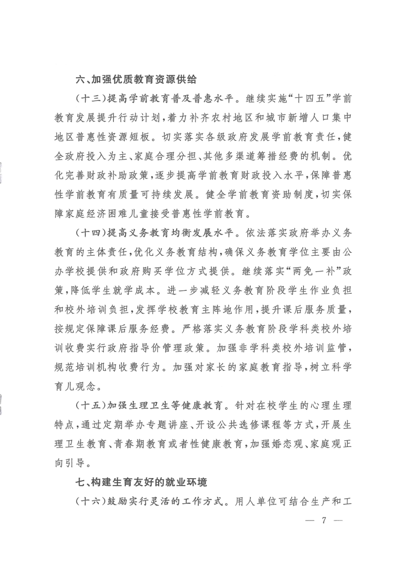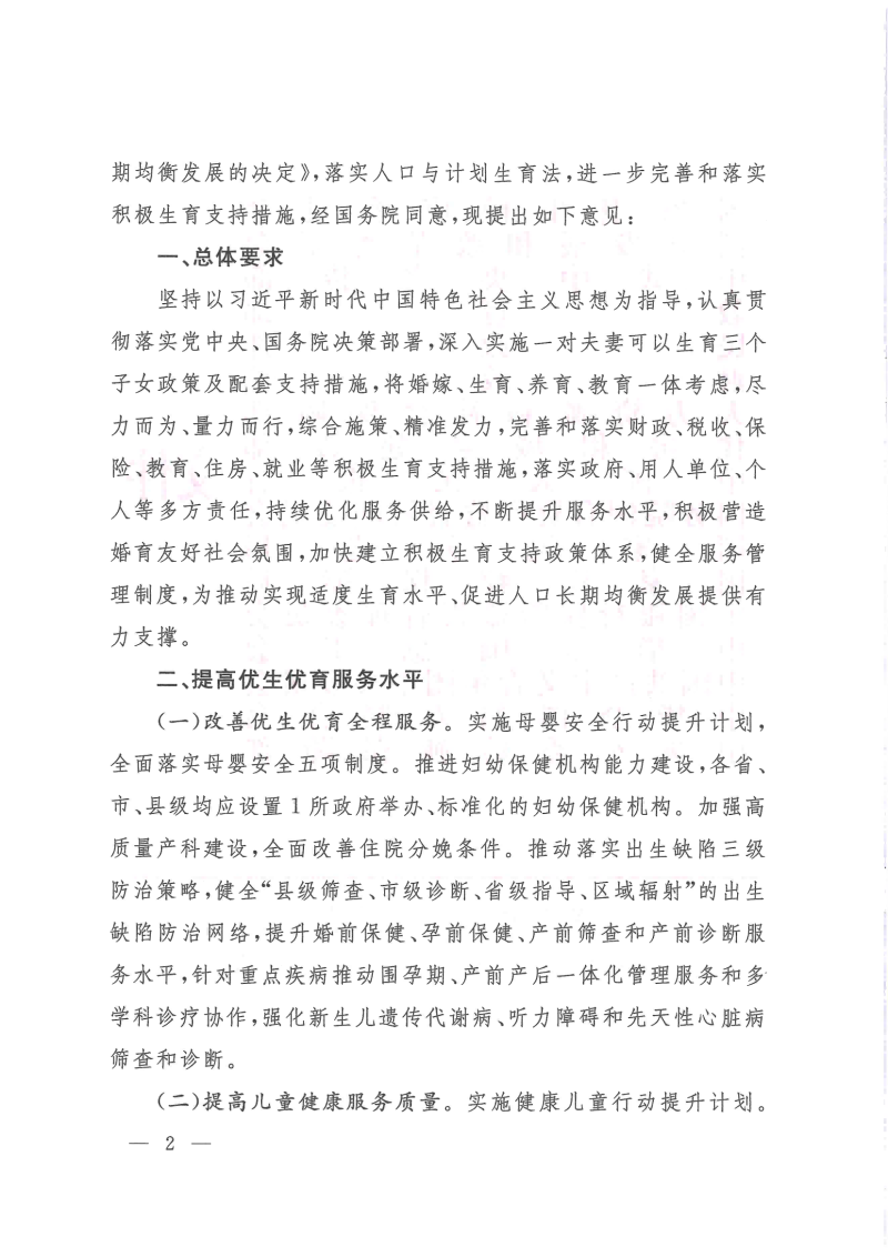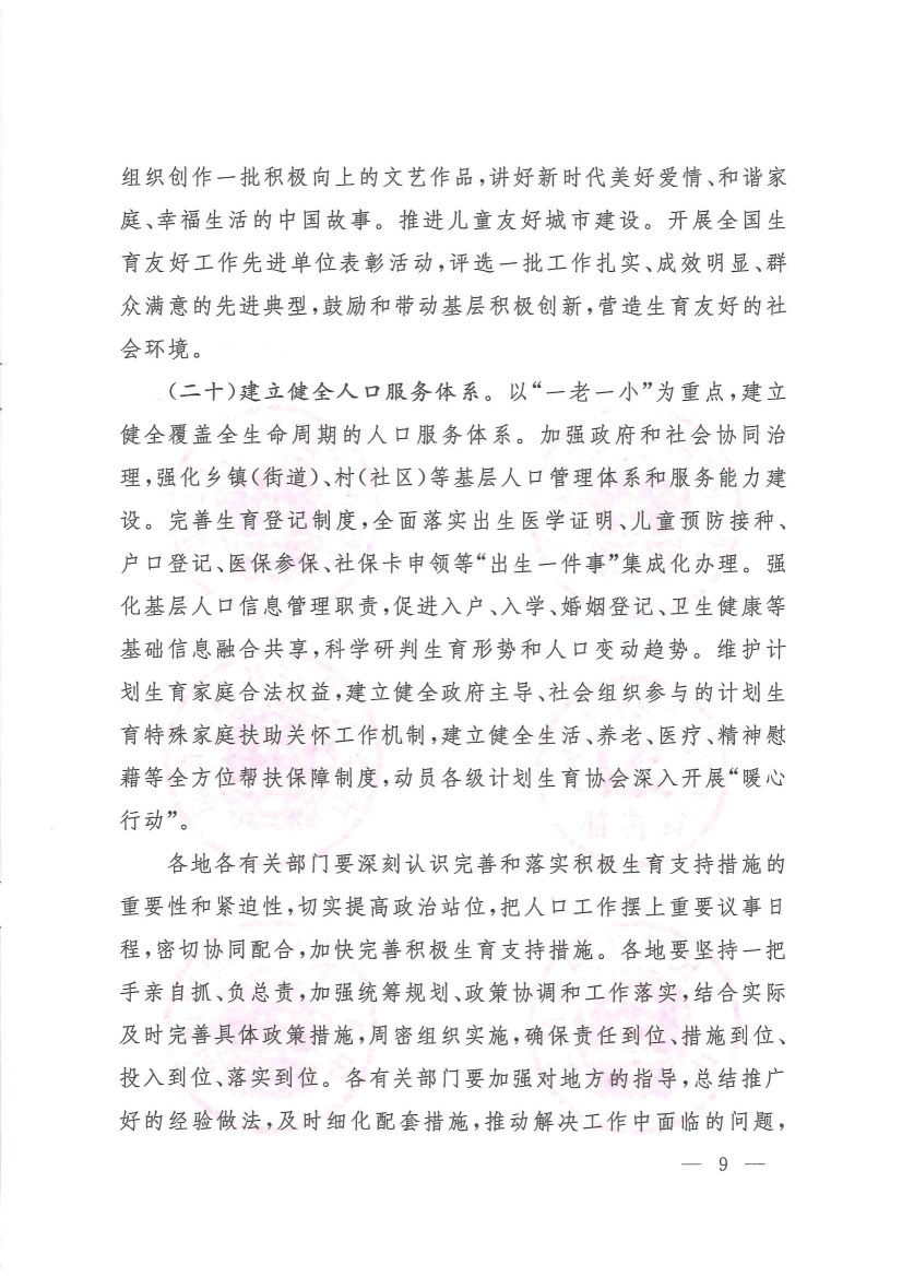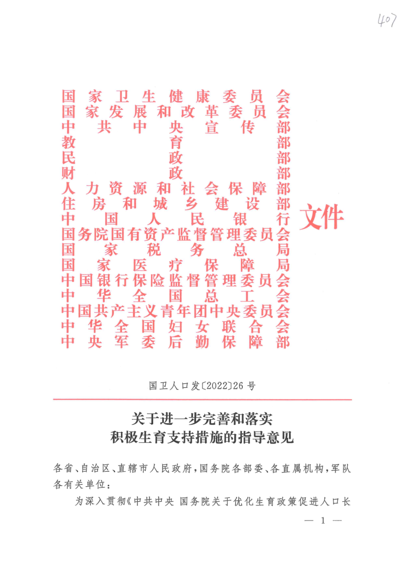 关于进一步完善和落实积极生育支持措施的指导意见(国卫人口发〔2022〕26号)