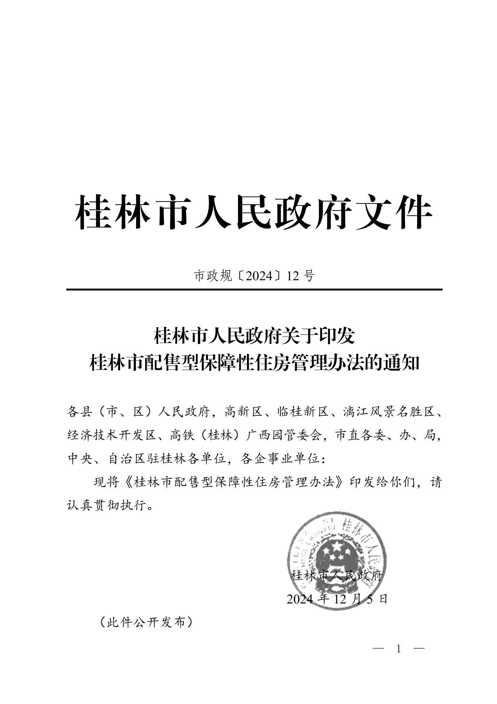 桂林市人民政府关于印发桂林市配售型保障性住房管理办法的通知(市政 规 〔2024〕12 号)