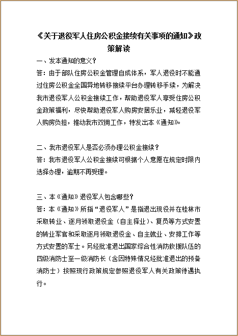 《关于退役军人住房公积金接续有关事项的通知》政策解读