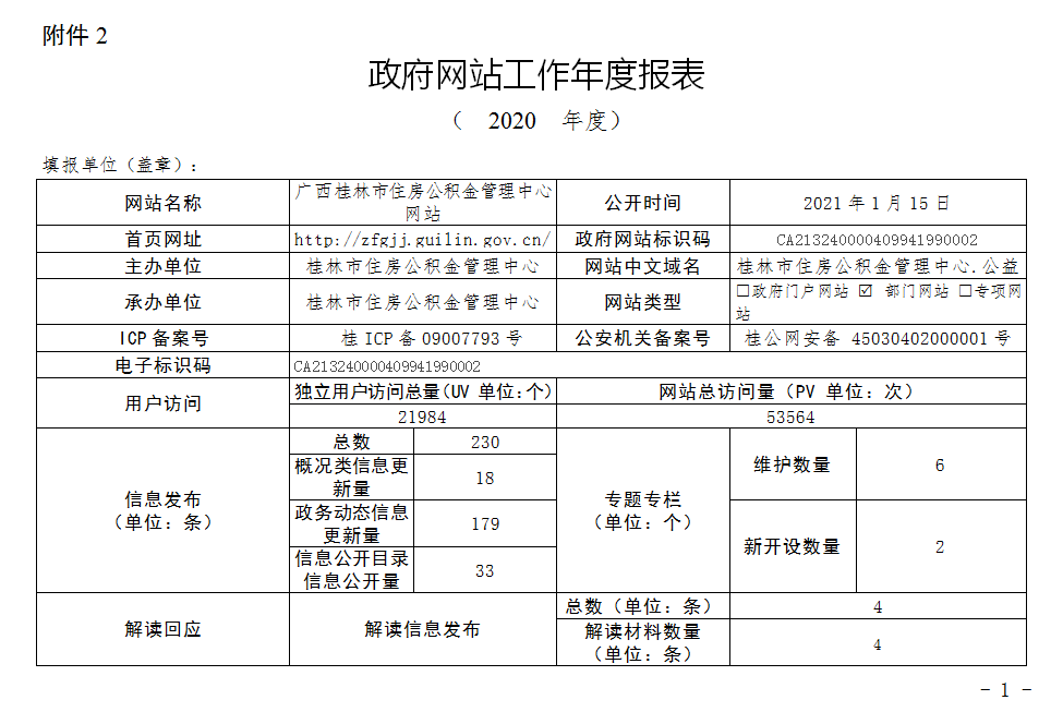 桂林市住房公积金管理中心2020年政府网站工作年度报表