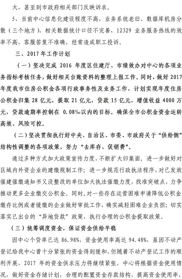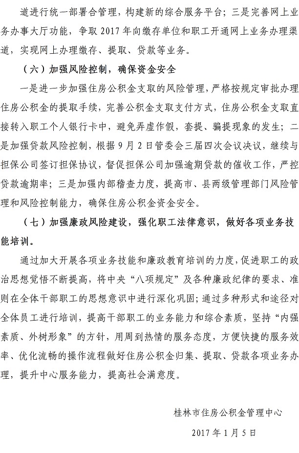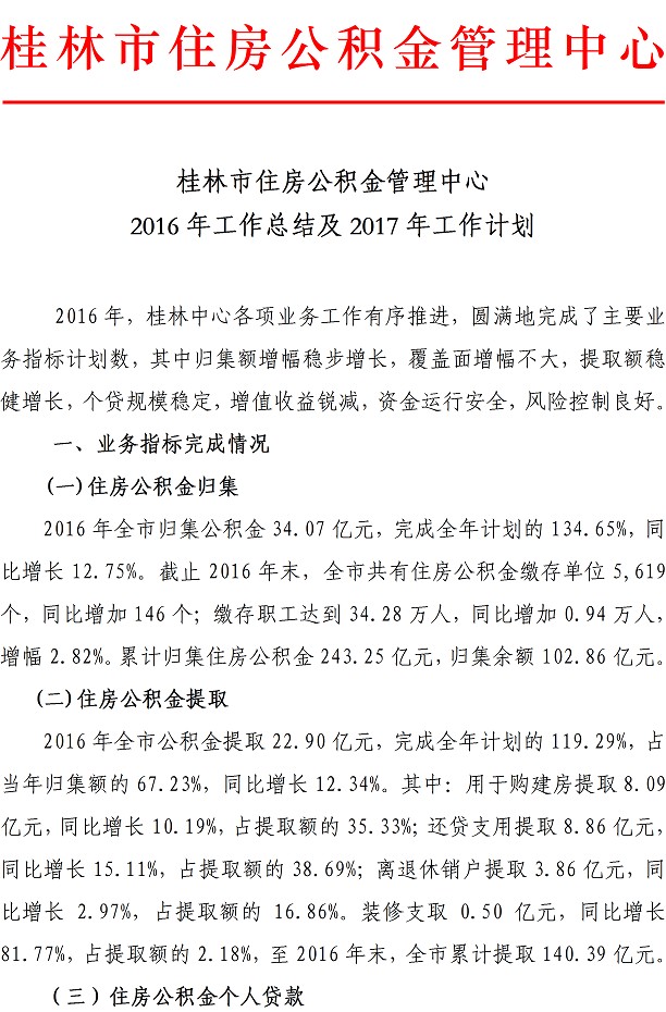 桂林市住房公积金管理中心2016年工作总结及2017年工作计划
