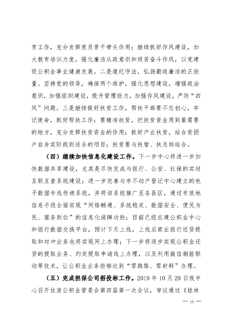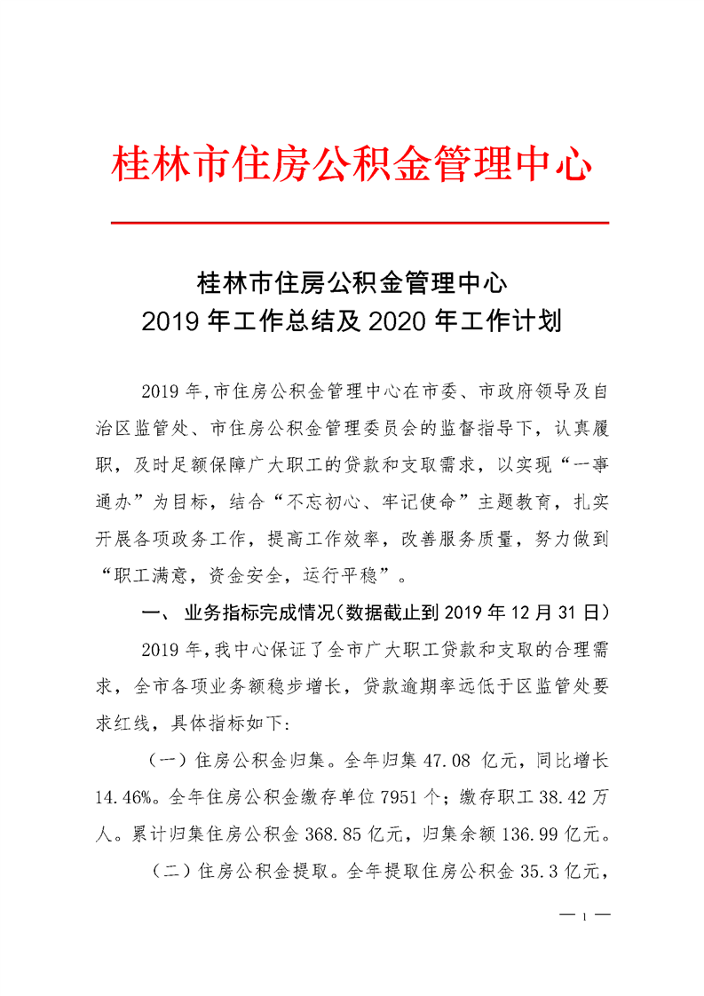 桂林市住房公积金管理中心 2019年工作总结及2020年工作计划