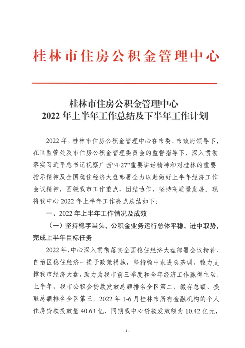 桂林市住房公积金管理中心2022年上半年工作总结及下半年工作计划