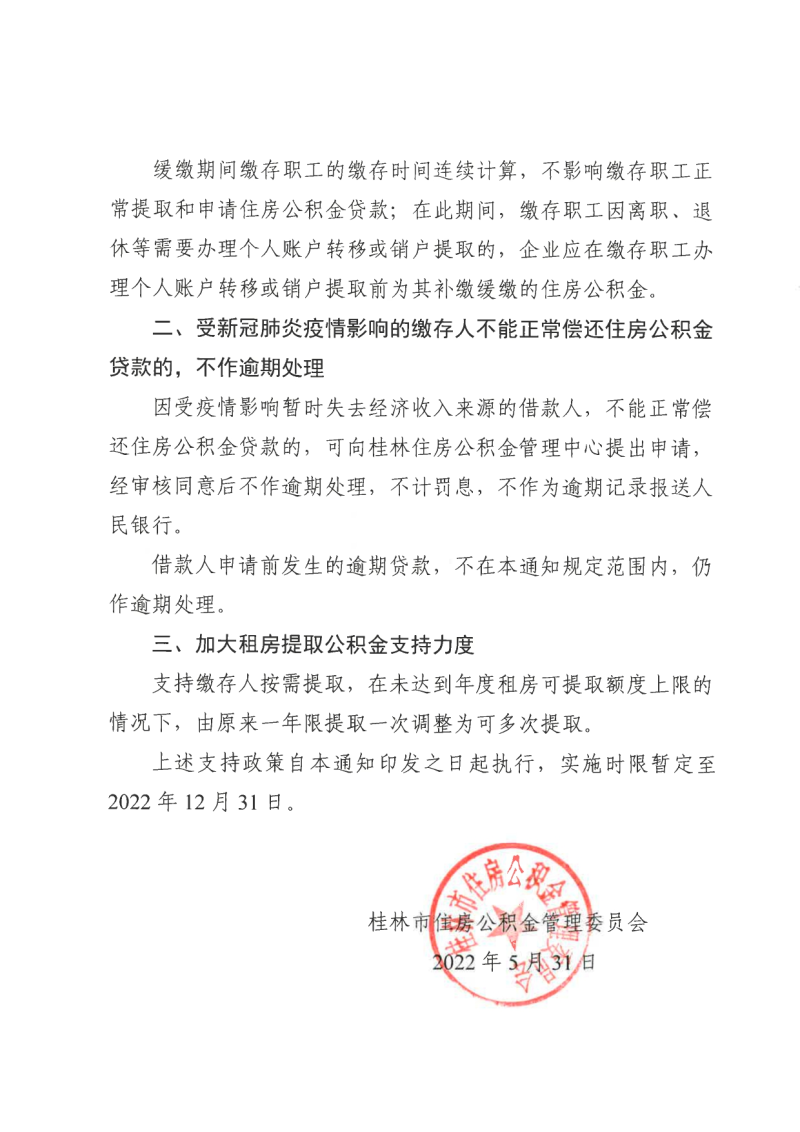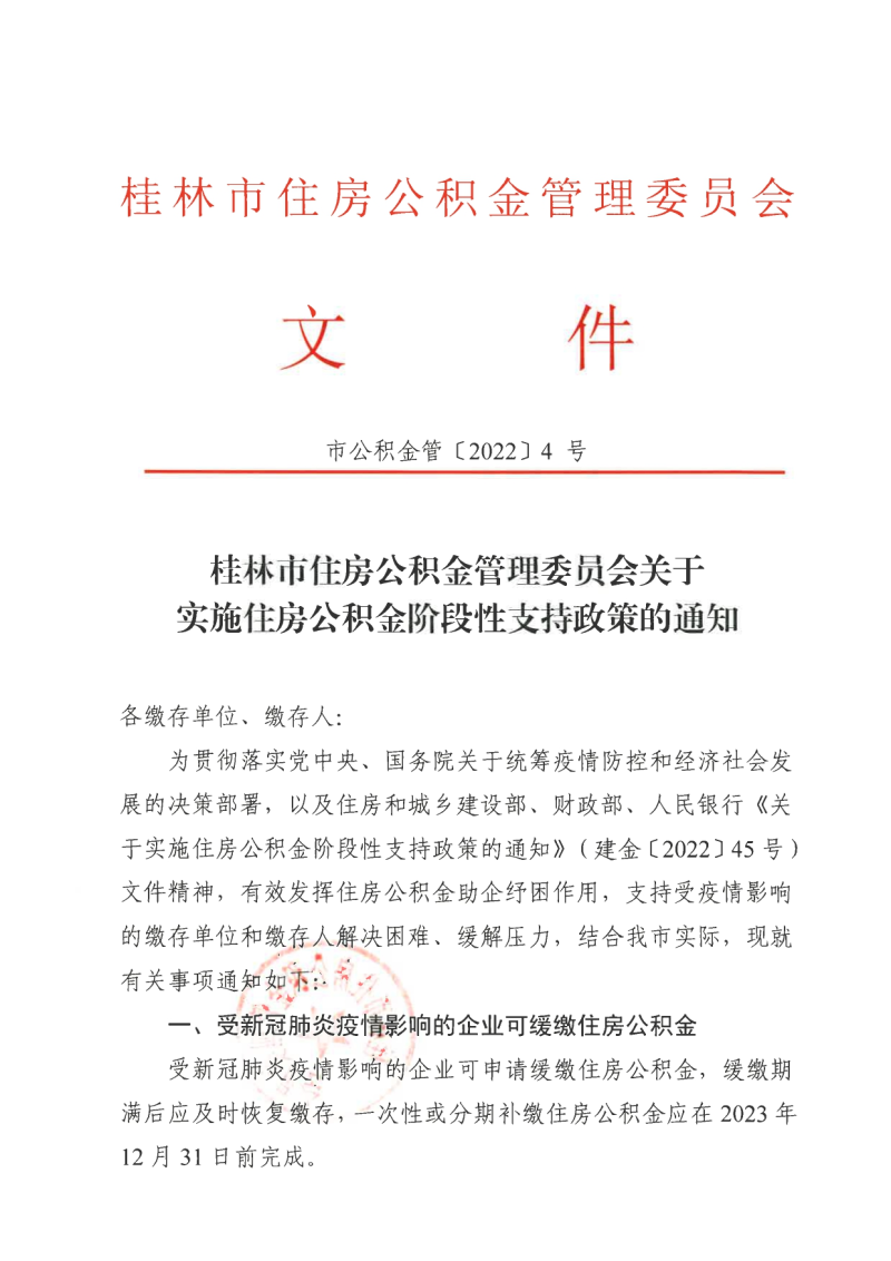 桂林市住房公积金管理委员会关于实施住房公积金阶段性支持政策的通知(市公积金管〔2022〕4号)