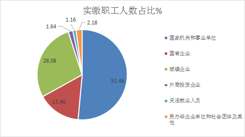《年度报告》显示,缴存职工中,国家机关和事业单位占51.46%,国有企业占15.48%,城镇集体企业占1.03%,外商投资企业占1.64%,城镇私营企业及其他城镇企业占27.05%,民办非企业单位和社会团体占2.06%,灵活就业人员占1.16%,其他占0.12%;