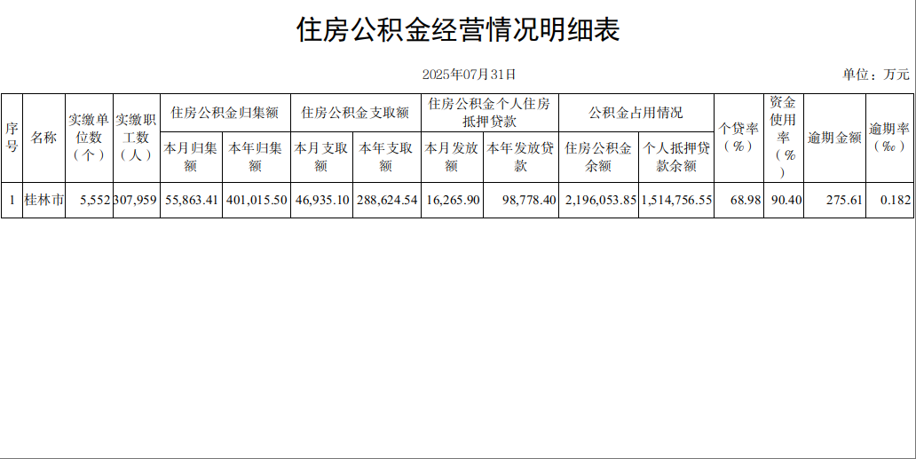 2025年7月住房公积金经营情况明细表