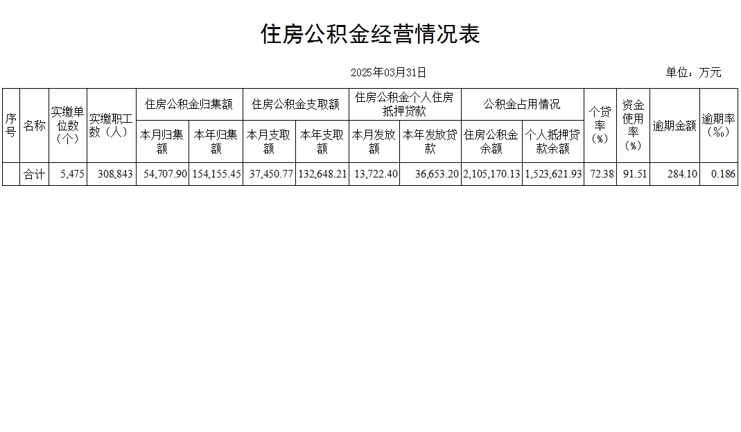 2025年3月住房公积金经营情况明细表