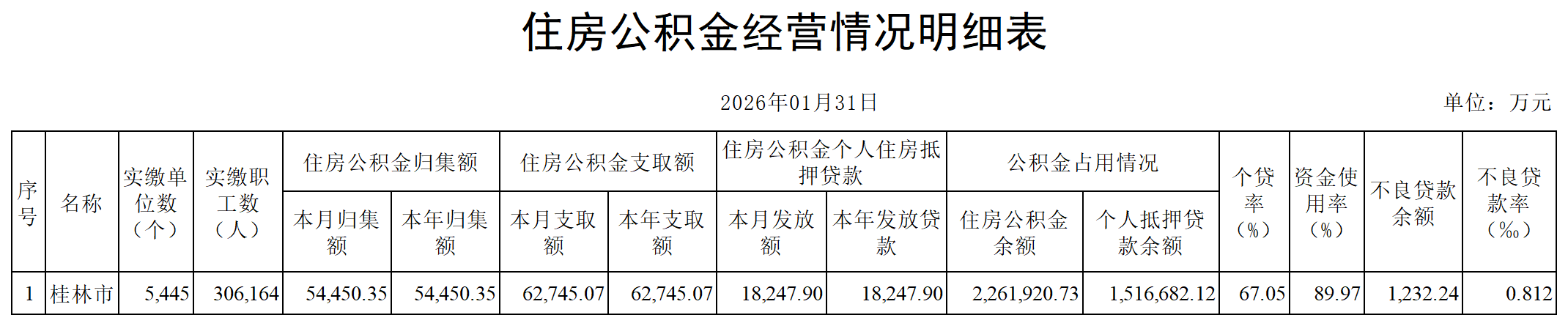 2026年1月住房公积金经营情况明细表