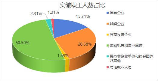 缴存结构均衡优化,缴存人覆盖多元主体,企业单位占45.97%(其中国有企业15.71%,城镇企业28.67%,外商投资企业1.59%),非企业单位占52.82%(其中国家机关和事业单位50.5%,民办非企业单位和社会团体及其他占2.32%),灵活就业人员占1.21%。