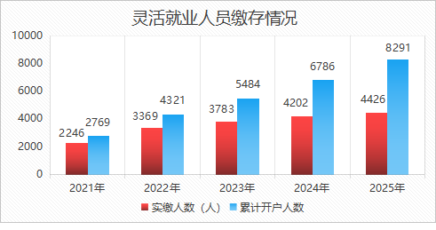 通过线上线下联动宣传,2025年,实缴人数达4426人,累计开户8291人,连续五年保持递增态势,进一步拓宽制度普惠性。