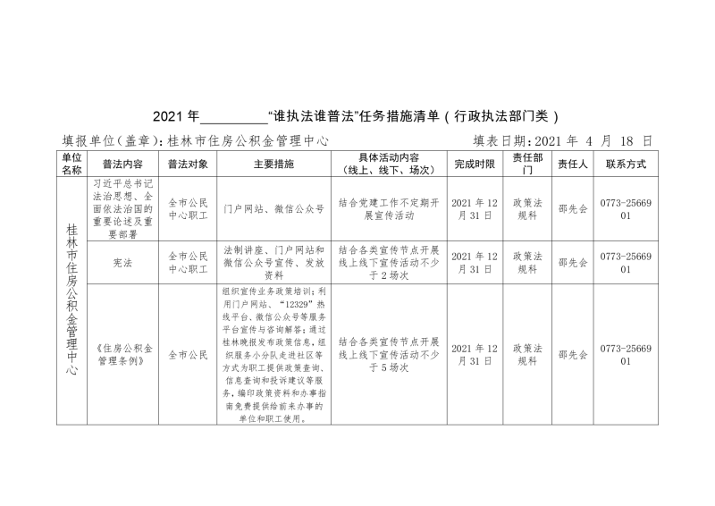 “谁执法 谁普法”任务措施清单