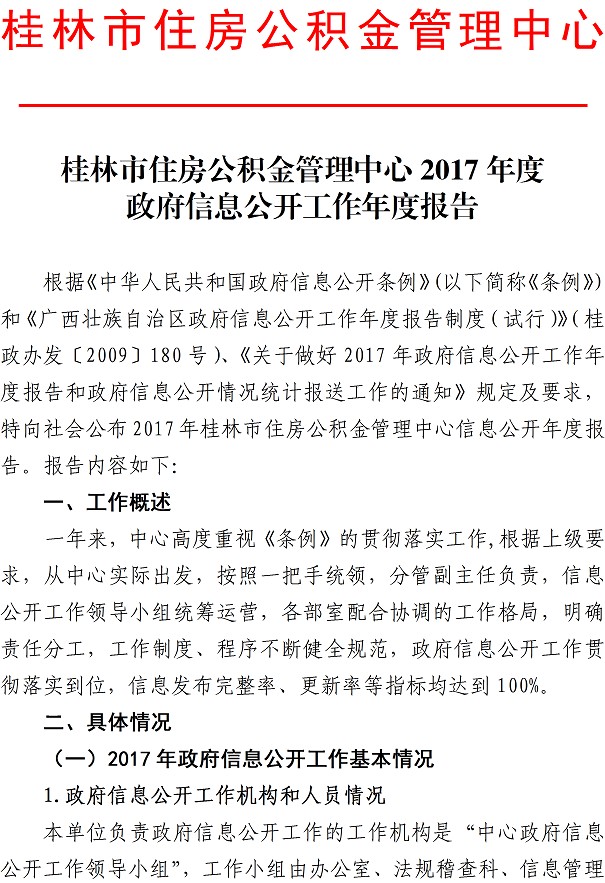 桂林市住房公积金管理中心2017年度政府信息公开工作年度报告