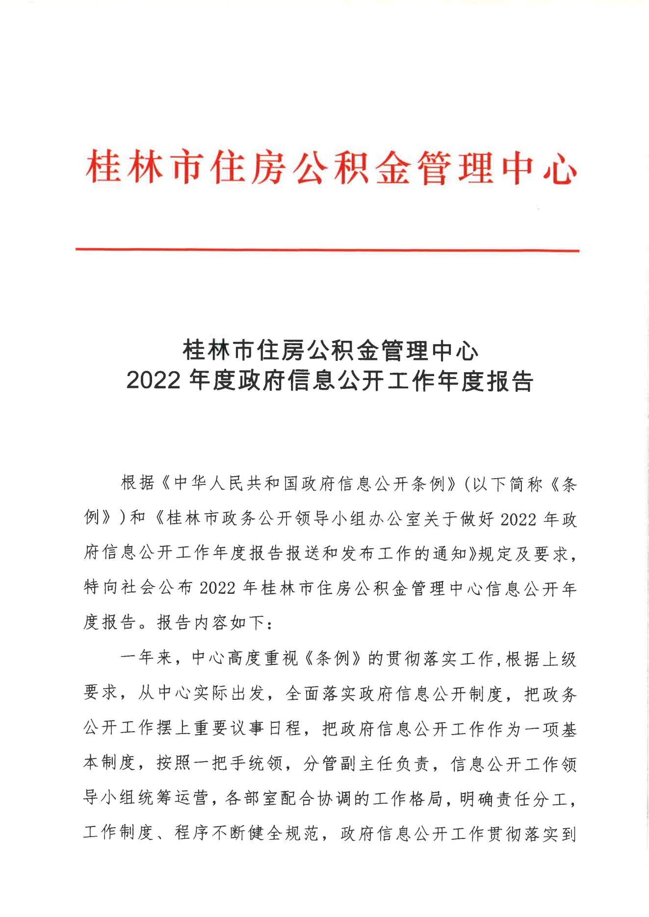 桂林市住房公积金管理中心2022年度政府信息公开工作年度报告