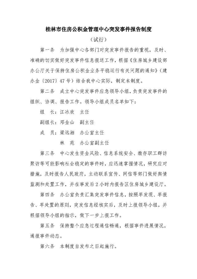 桂林市住房公积金管理中心突发事件报告制度(试行)