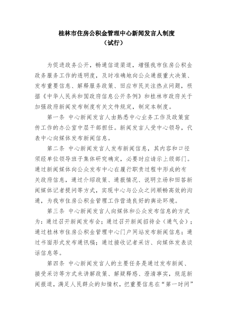 桂林市住房公积金管理中心新闻发言人制度 (试行)