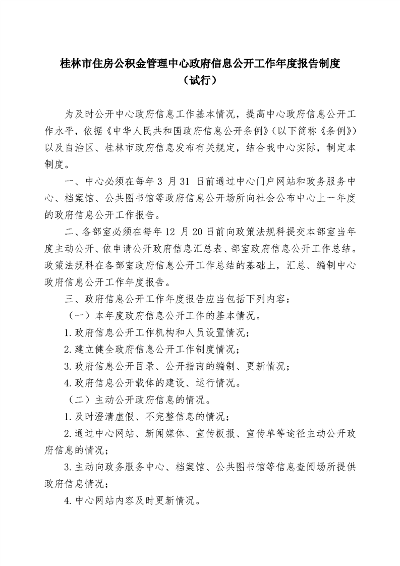 桂林市住房公积金管理中心政府信息公开工作年度报告制度 (试行)