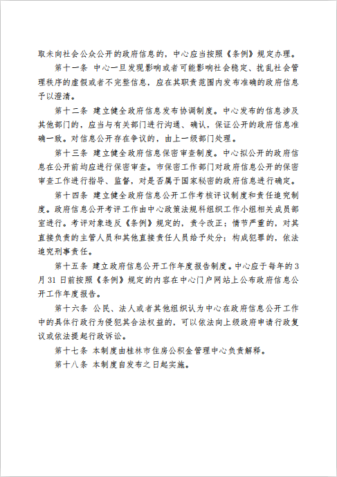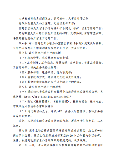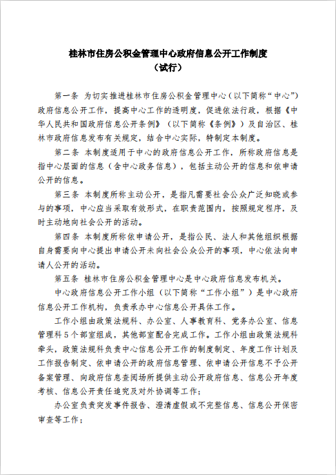 桂林市住房公积金管理中心政府信息公开工作制度(试行)