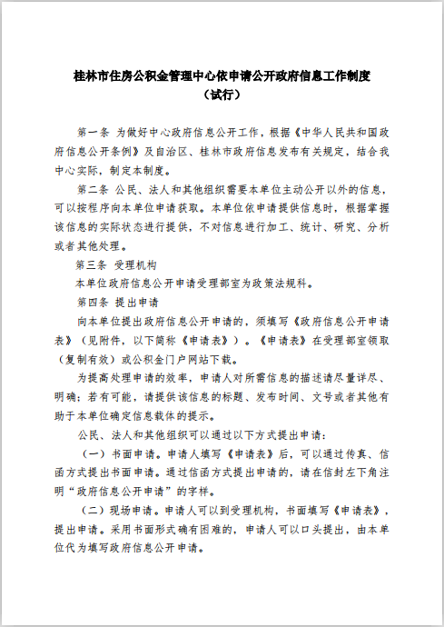 桂林市住房公积金管理中心依申请公开政府信息工作制度(试行)
