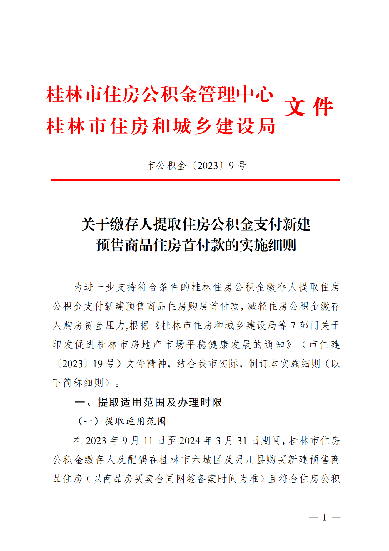 关于缴存人提取住房公积金支付新建预售商品住房首付款的实施细则(市公积金〔2023〕9号)