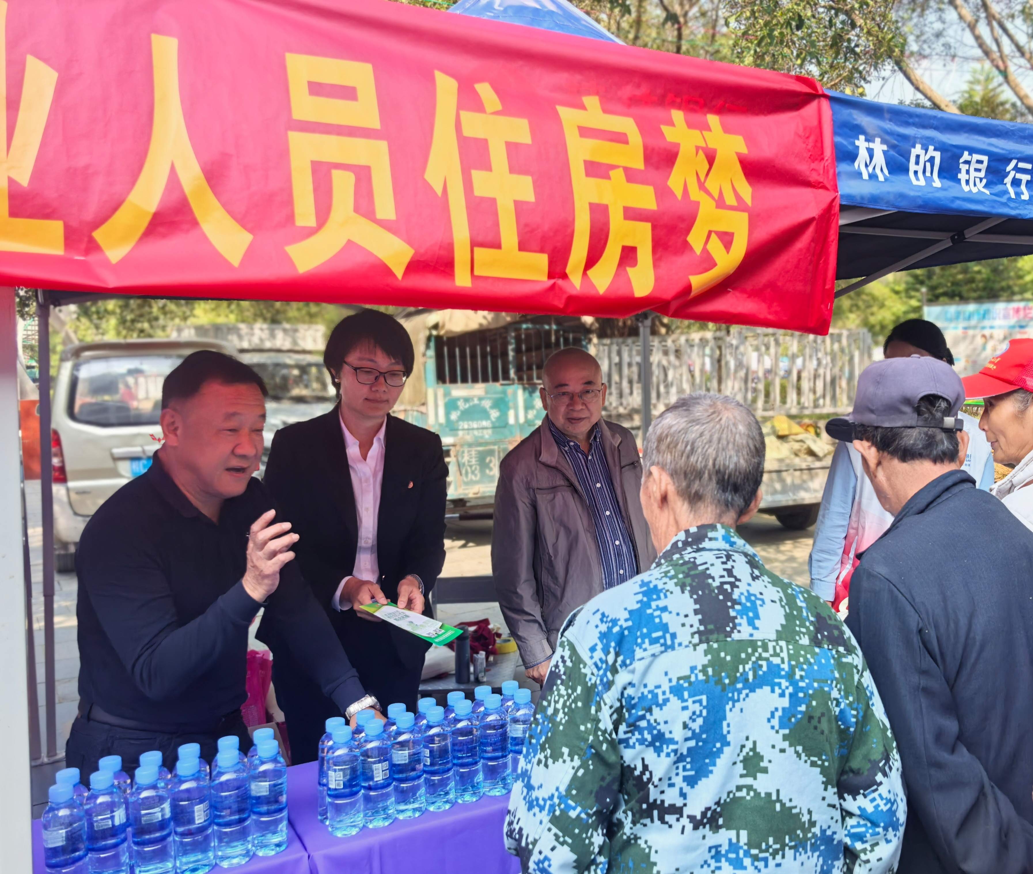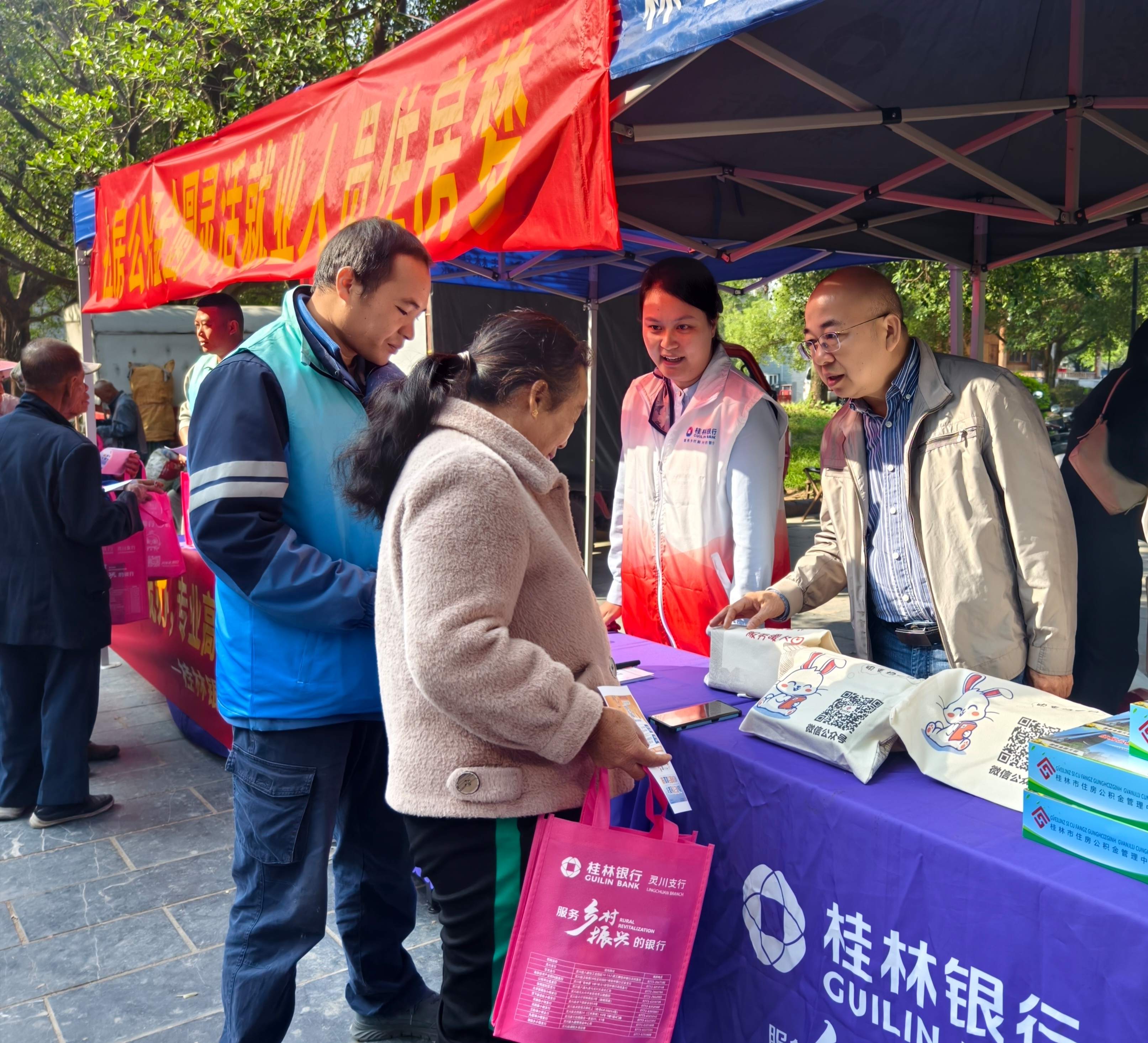 9点多,圩场的摊贩、赶圩群众以及晨起锻炼的老人便围在宣传摊位前,你一言我一语地询问住房公积金政策、电信诈骗防范技巧等各种问题,公积金和银行的工作人员一边派发政策宣传单一边逐一耐心解释大家的疑问。一位售卖农具的老者问到,“我家大儿子在县城跑外卖,自己买公积金是不是就可以买房啦?”,正在宣传台前的李钧书记操着接地气的乡音白话向他介绍起了自愿缴存住房公积金的好处、办理业务的便捷,并与老者聊起家常,当知道对方儿子是一名毕业4年的大学生时,李钧书记高兴地将桂林最新出台的“青年人才住房公积金(贷款)支持政策”宣传单递到了他的手上,为他算了一笔公积金贷款购房的经济账,和煦的阳光照在老者身上,他看着手里的宣传单,脸上多了一分笑容。