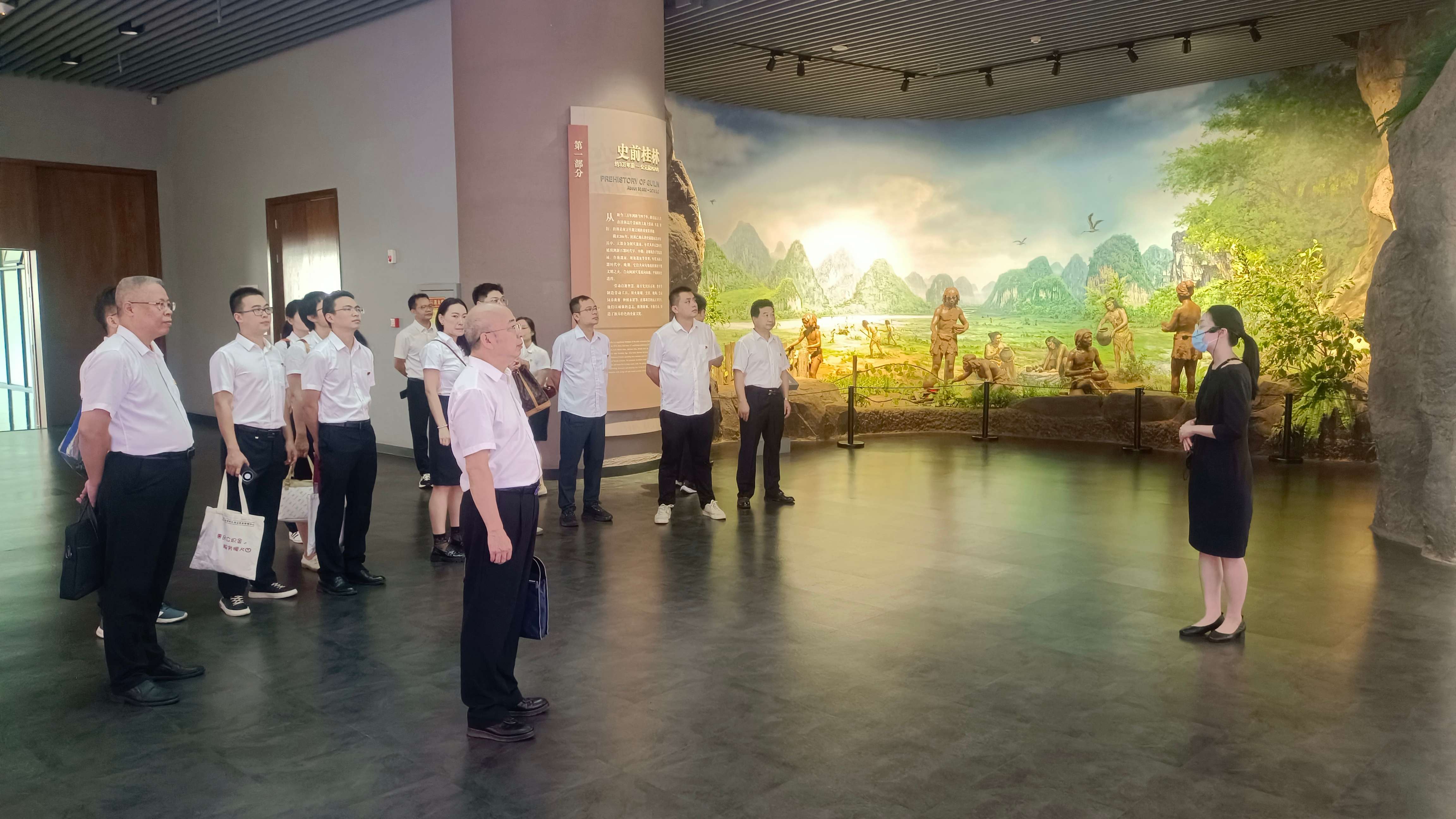 活动第一站,大家前往桂林市博物馆参观“漓江春秋——历史文化陈列馆”。展览以桂林的历史发展脉络为基线,以史前文化、佛教文化、抗战文化等为重点,以文物、图表、照片结合新科技手段,充分展示了桂林这片土地深厚、悲壮、难忘的历史记忆。大家仿佛行舟于历史长河,探秘被誉为“华南乃至东南亚史前考古重要标尺和资料库之一”的甑皮岩遗址,走近“世界最古老的人工运河之一”——灵渠聆听秦军破水修渠的故事,领略唐宋摩崖造像、碑刻之盛。党员干部在一件件文物、一段段故事中感受到桂林这座中国首批历史文化名城深邃、博大的内涵,体会到桂林独特历史文化带来的震撼。