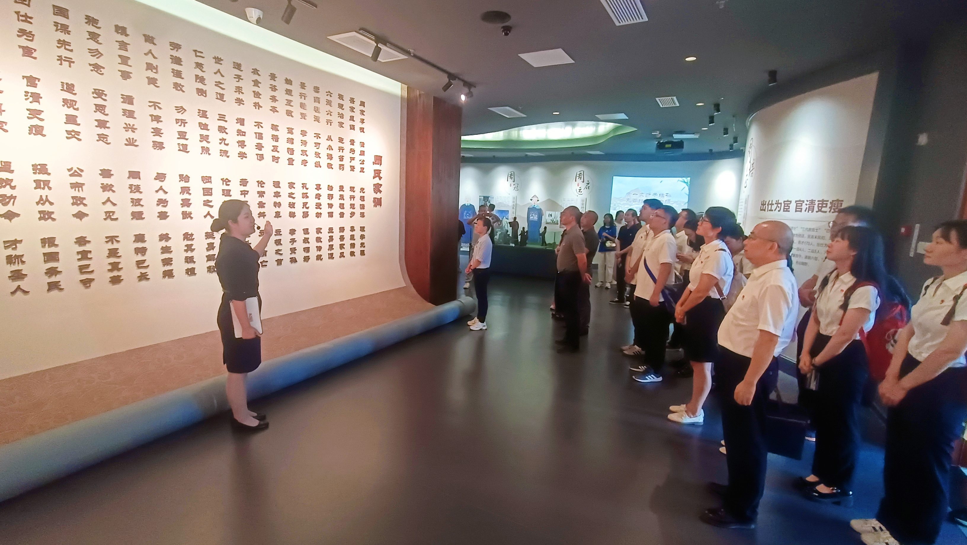随后,党员们到位于灵川县九屋镇江头村的广西家教家风基地(桂林)参观学习。广西家教家风基地(桂林)依托灵川县九屋镇江头百年清官村厚重的家教家风文化和清廉史料高标准建成,分层分类展示先贤家风、红色家风、时代新风等内容,以丰富的内容和多元的展示方式,生动呈现了从古至今各个时期的家风传承故事。在讲解员的引导下,党员们有序参观一至三层的家教家风文化主题展厅。先贤家风展区中,周敦颐等七名江头村周氏清官的家风故事,让党员们领略到“出淤泥而不染”的莲花精神和“清白可容身”的深厚底蕴;红色家风展区里,老一辈革命家的家书、事迹,传递出满满的家国情怀;时代新风展区则通过一个个鲜活的当代家庭故事,彰显了新时代家风建设的创新与传承。大量的文献图画资料与精妙的光影、视频技术相结合,为党员干部们带来了沉浸式的学习体验,大家仿佛穿越时空,与历史对话,深刻地理解了家教家风对个人成长、家庭和谐以及社会发展的重要性。