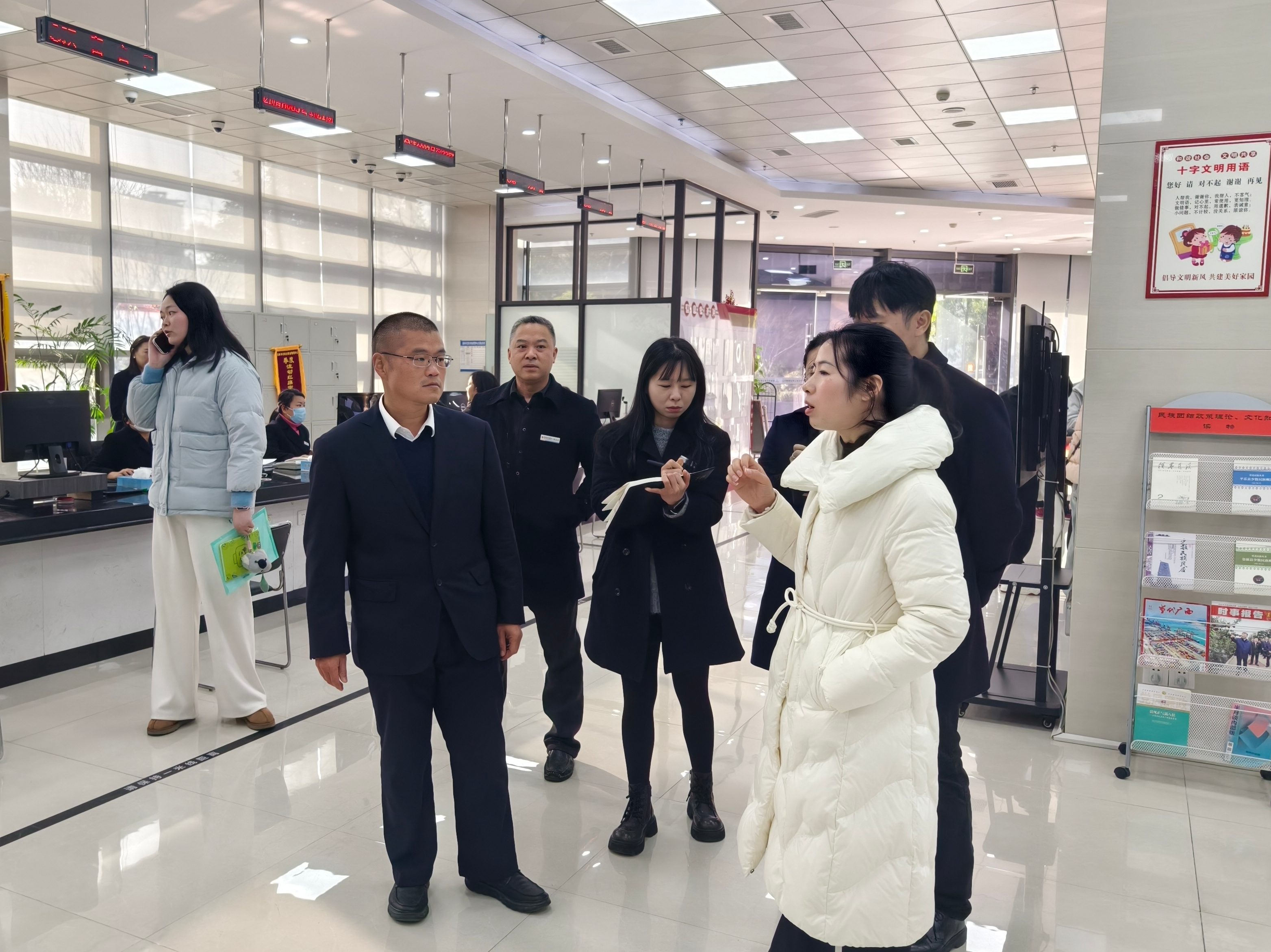 指导组一行深入中心各个区域,实地查看了业务大厅、文化长廊、职工健身房等场所,对照《全国文明单位测评体系》深入了解中心单位文化建设、宣传氛围营造等情况。