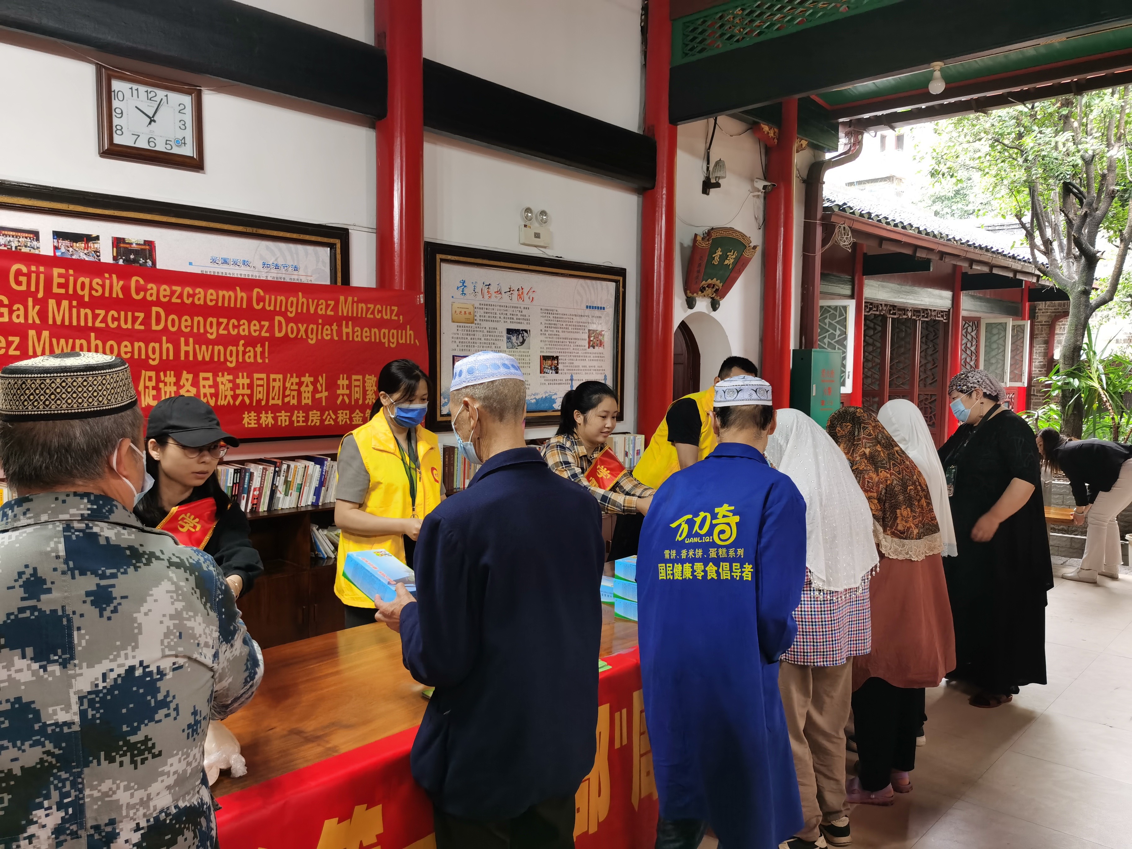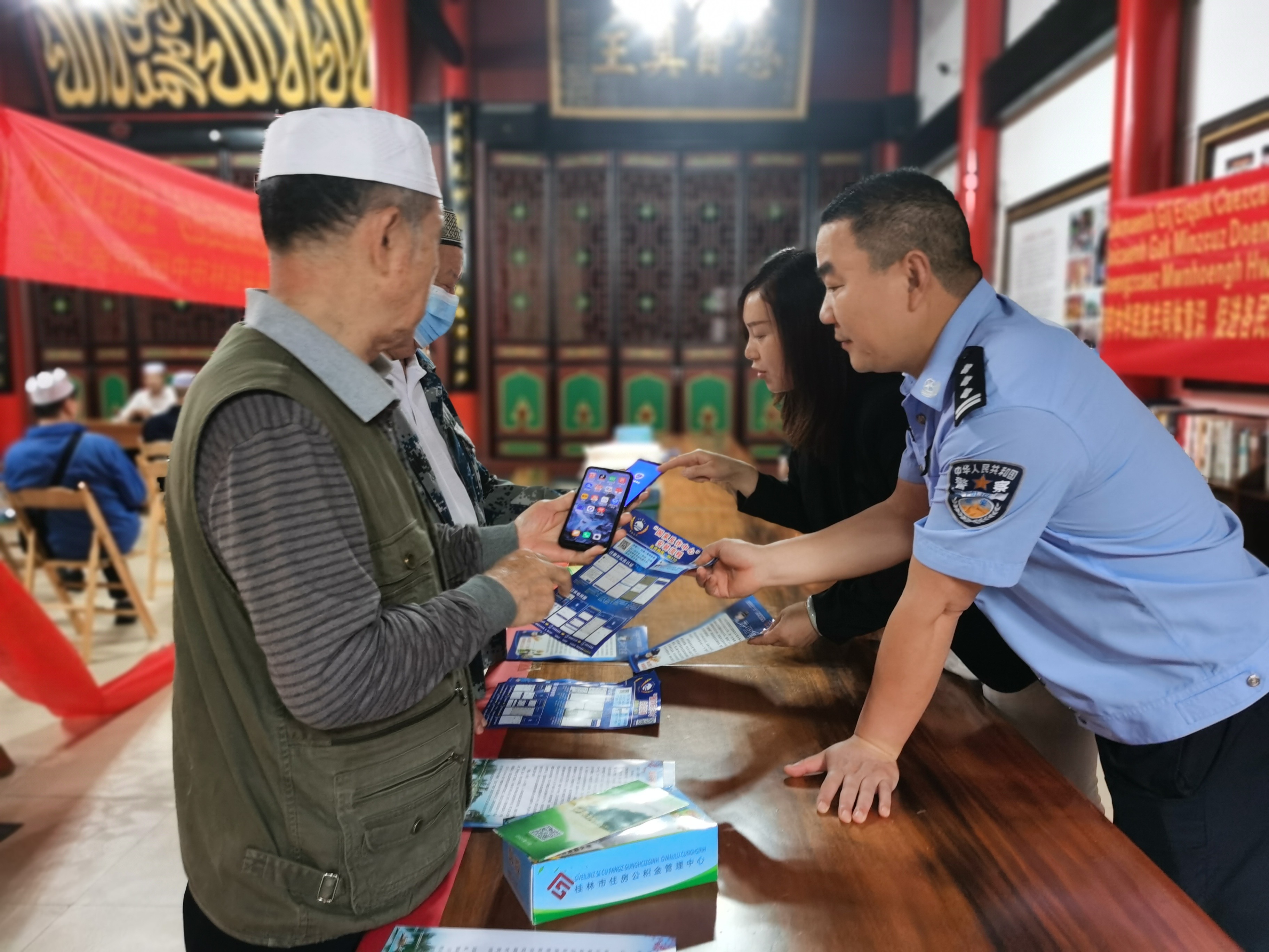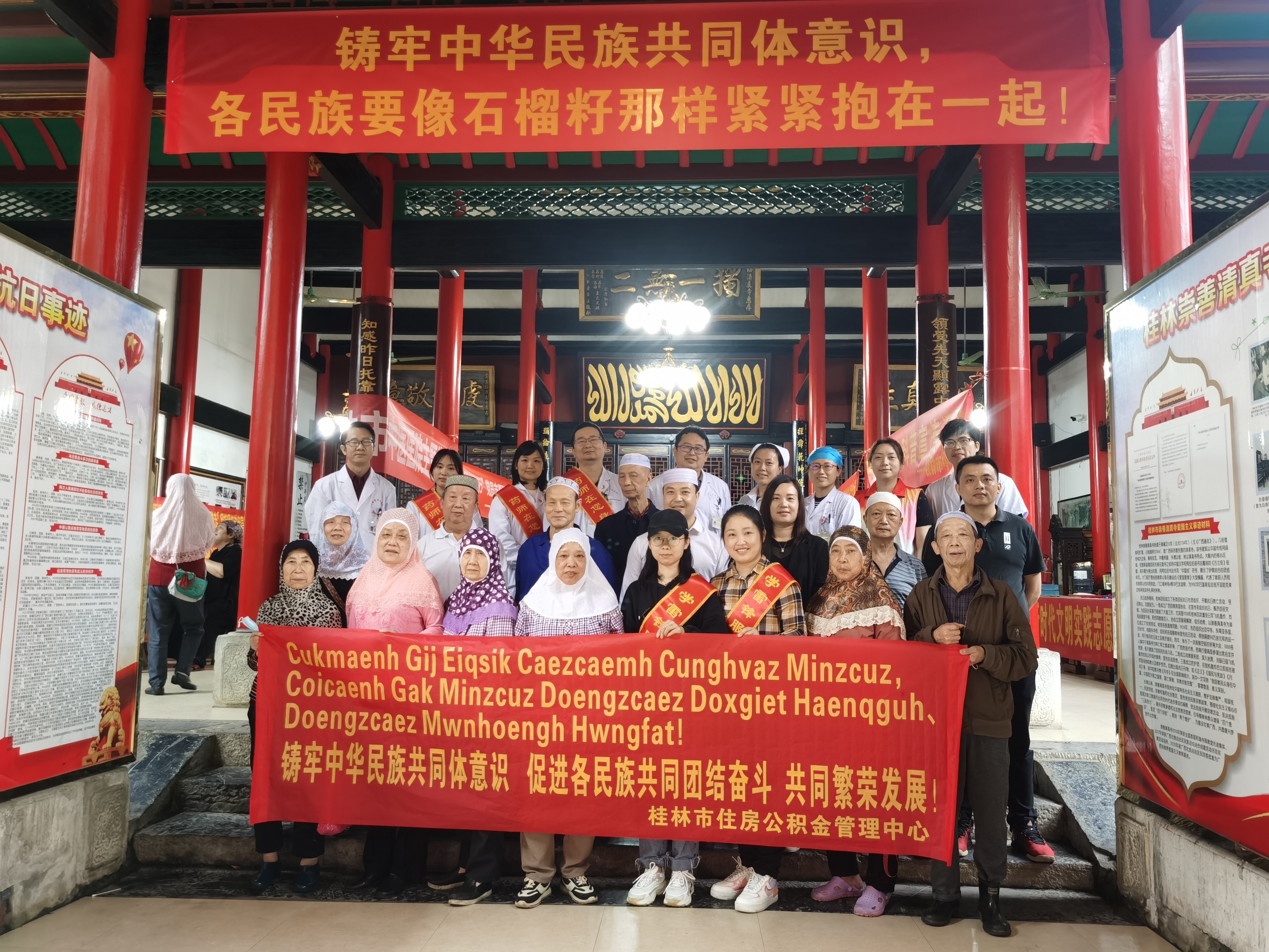 为贯彻落实习近平总书记关于加强和改进民族工作的重要思想和视察广西“4.27”重要讲话精神以及对桂林的重要指示精神,扎实做好民族团结创建进步工作,5月27日,市住房公积金管理中心联合五美社区、辖区民警、市中医医院到崇善清真寺开展以“宣传公积金惠民政策 远离诈骗保平安 科学养生助健康 中华民族一家亲 同心共筑中国梦”为主题的民族团结进步创建工作。