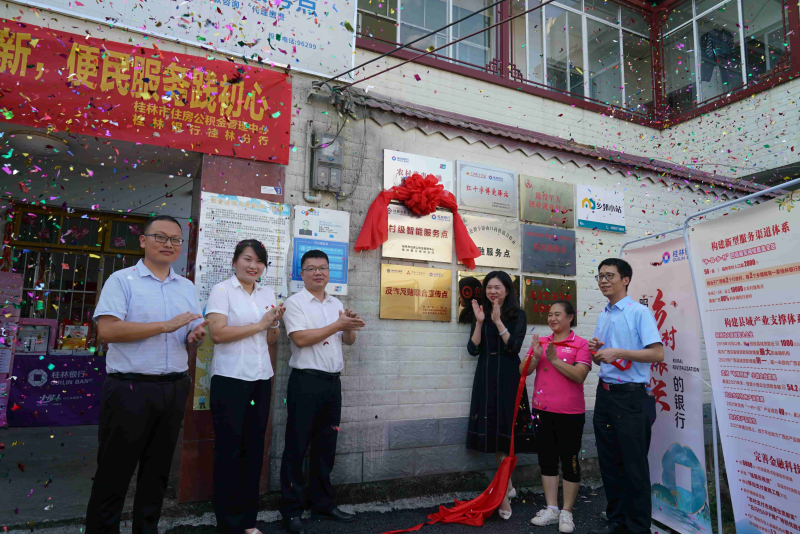 7月28日,桂林市住房公积金管理中心联合桂林银行桂林分行打造的我市首个农村地区公积金智能缴存服务点在灵川县潭下镇山口村正式启用,并举行揭牌仪式。中心党组成员、副主任罗迪,桂林银行桂林分行党委委员、副行长秦婧婧及相关负责人参加揭牌仪式。